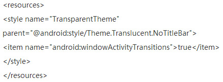 另外一種方式是修改activity的樣式,設置android:windowActivityTransitions屬性值為 true。