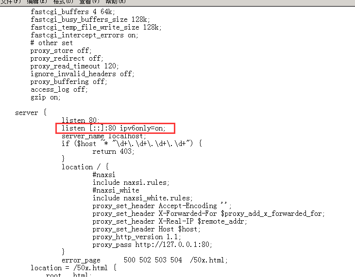 找到Nginxconf目錄下的 default.conf,加入 listen [::]:80 ipv6only=on;見下圖。